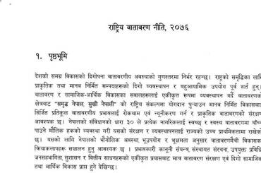 वातावरण प्रदुषण नियन्त्रण गर्न मन्त्रालयले तयार पारेको मापदण्ड माथि राय सुझाव माग गरिएको सूचना