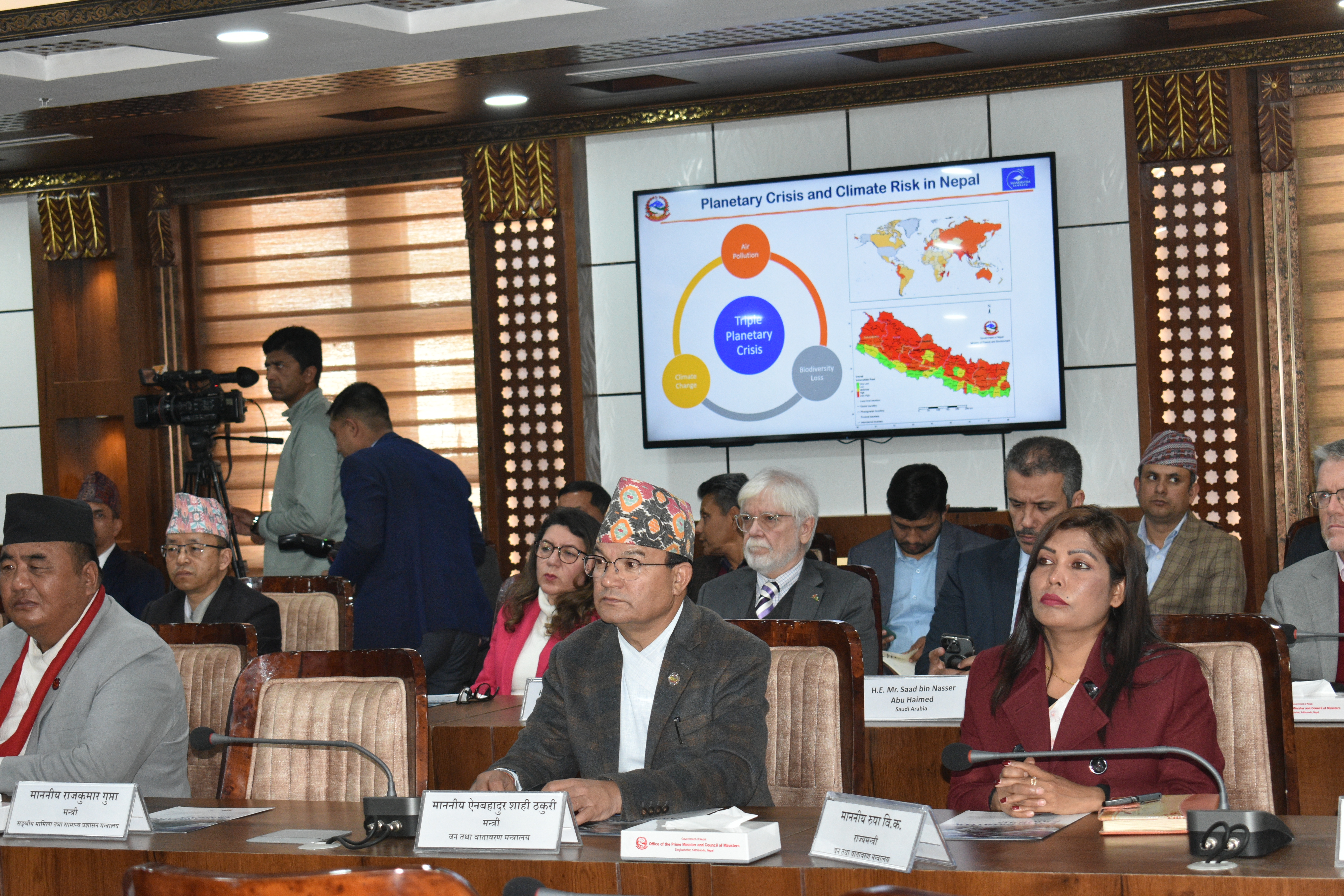 परराष्ट्र मन्त्रालय र वन तथा वातावरण मन्त्रालयको सयुक्त आयोजनामा सगरमाथा संवाद कार्यक्रममा मा. वन तथा वातावरण मन्त्री ज्यू र श्रीमान् सचिव ज्यू