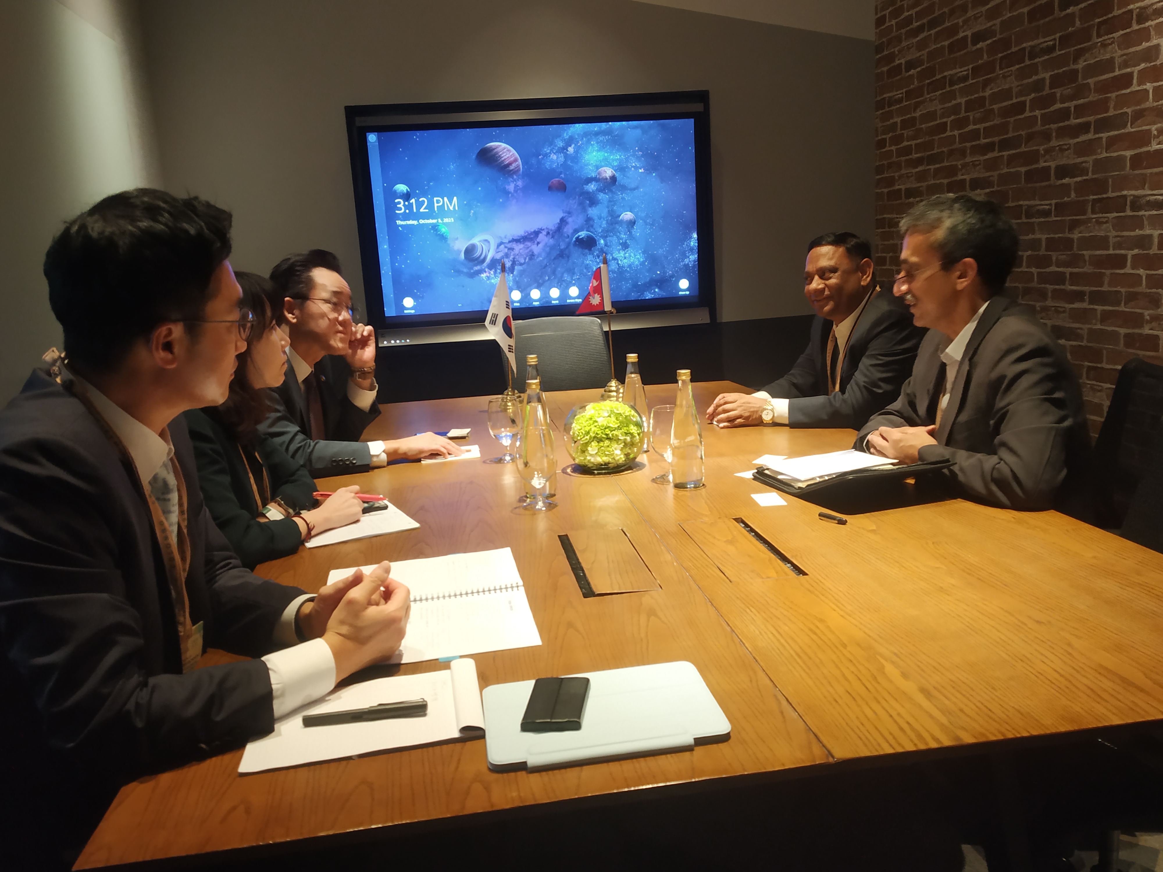 गणतन्त्र कोरियाका सहायक वातावरण मन्त्रीसंगको द्वीपक्षीय भेटघाटको क्रममा मा. डा विरेन्द्र प्रसाद महतो, वन तथा वातावरण मन्त्री, 05 Oct 2023, Colombo